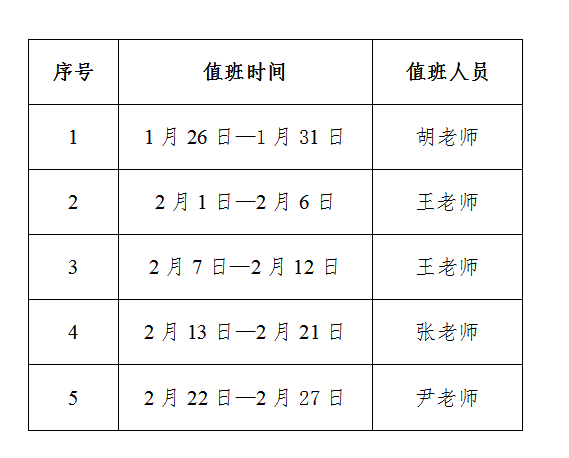 纪检室2026年寒假值班安排